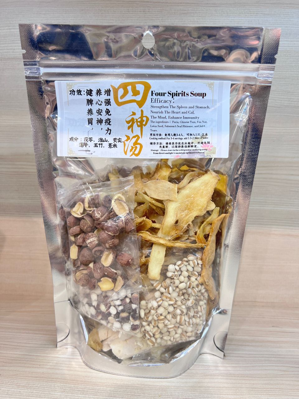 The ingredients :Poria, Chinese Yam, Fox Nut, Lotus Seed, Solomon’s Seal Rhizome, and Job’s Tears.